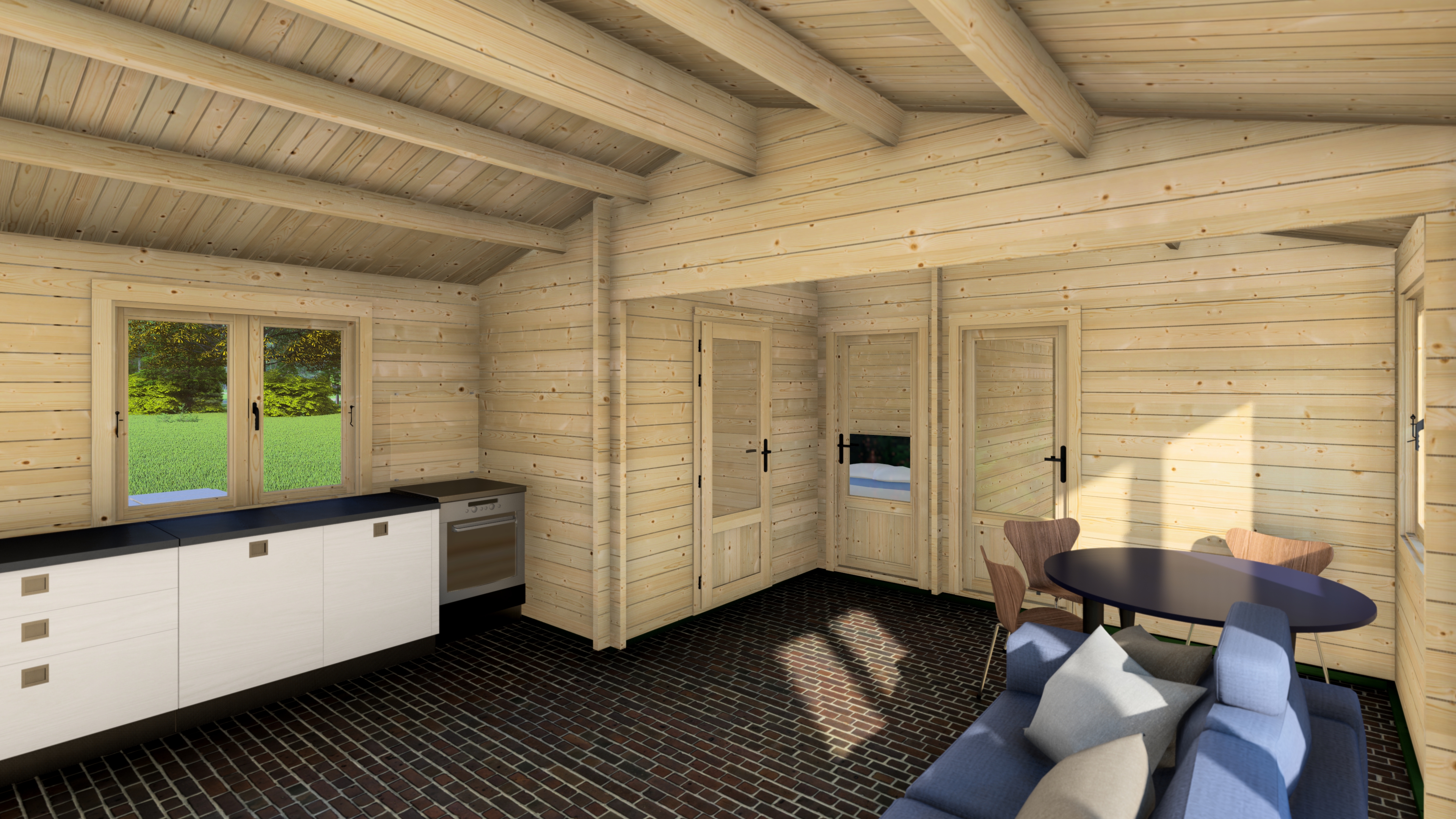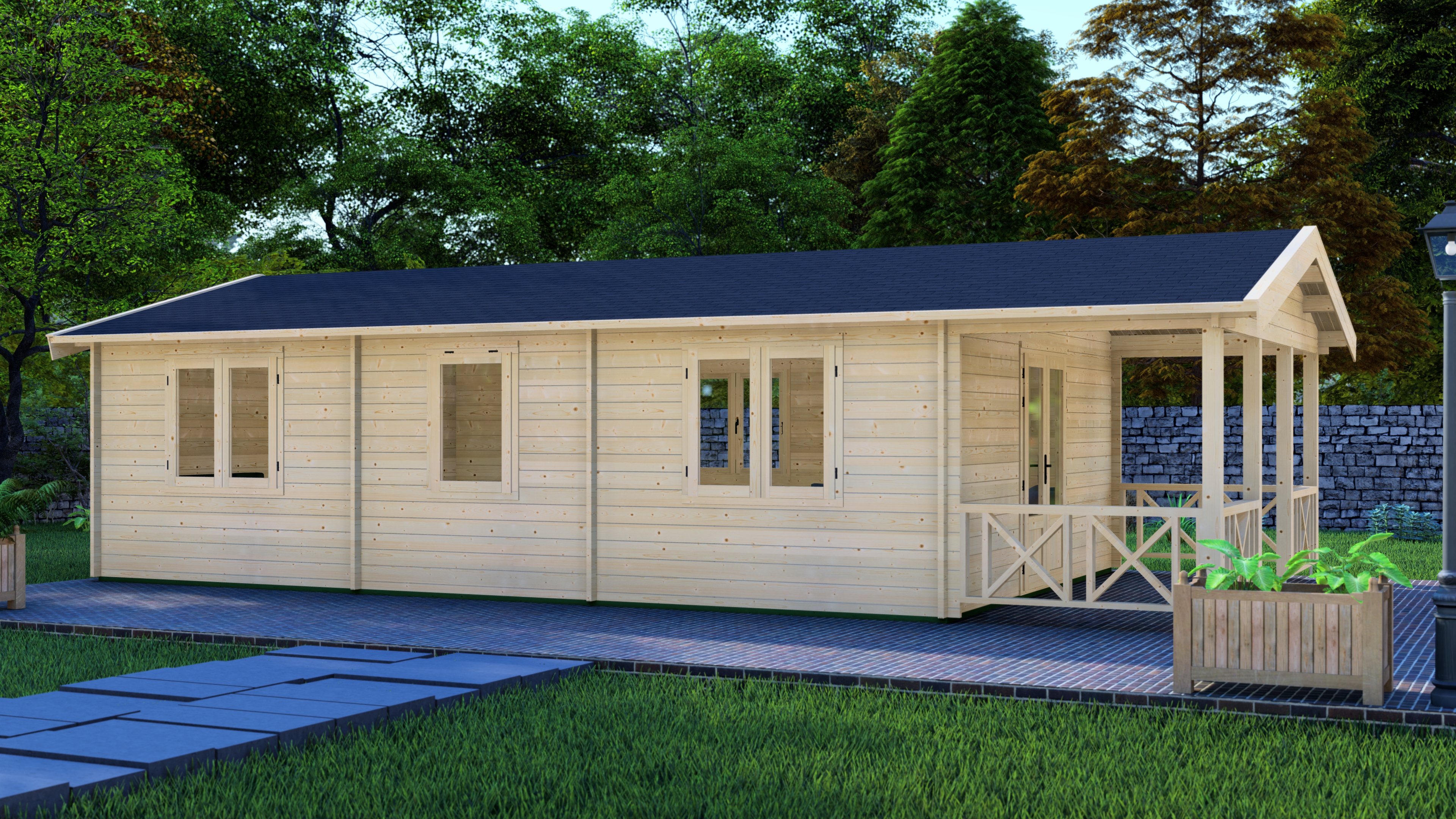 - Immutatud alusraam, põrandalaagid ja terrassi laudis (kui terrass kuulub komplekti)