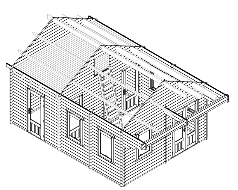 - Katusekonstruktsioon koos täispunn laudisega 18x90mm, ääre ja otsa lauad